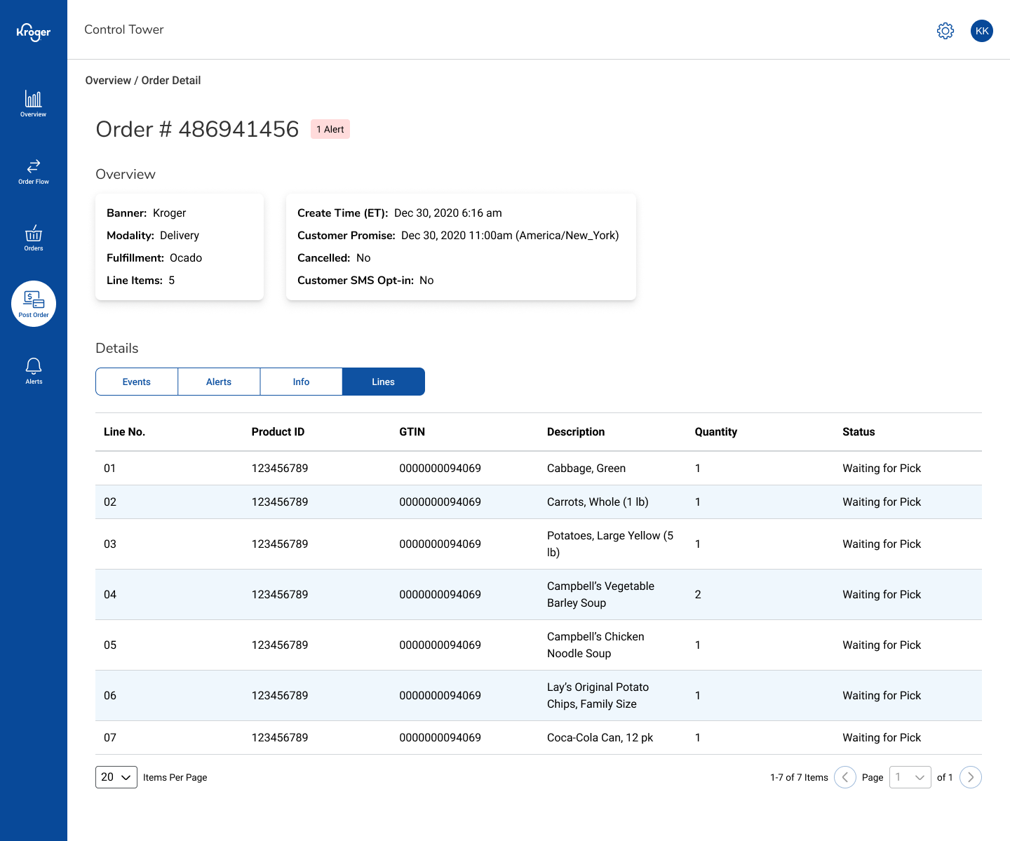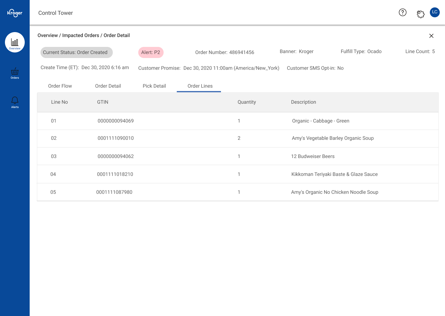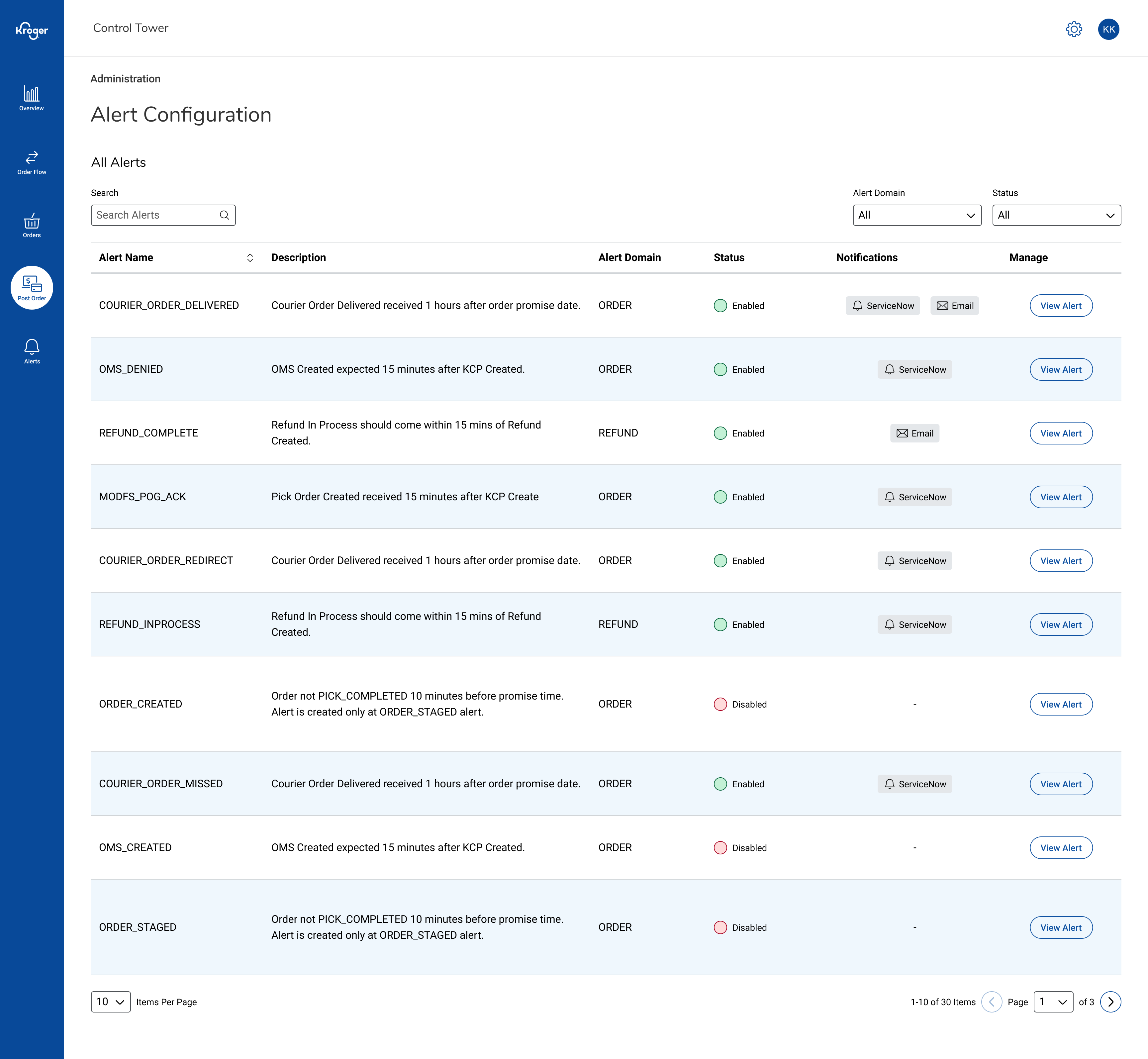 - Filters in the order-status table to focus on the most relevant alerts.